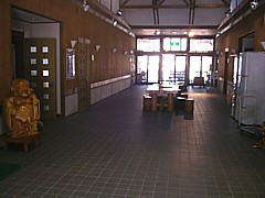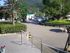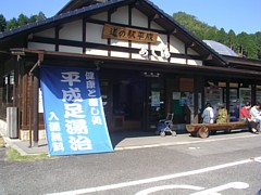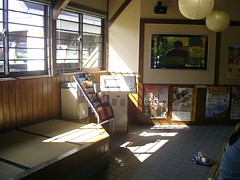 これほど何ヶ所も休憩施設がある駅も珍しい。メインは敷地左側(トイレの横)にある建物で、内部に足湯が設けられている。 | |