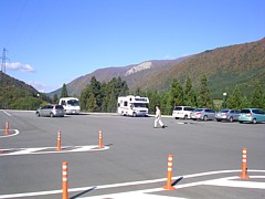 公称は大型車3台+普通車38台、温泉施設の前にも20台ほど停められるから繁忙期でも不足しないと思う。 | |