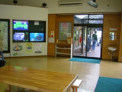 9時〜18時、駅舎と別棟の休憩&案内所は畳のコーナーまできちんと確保し、テーブルやベンチまで問題なく備えている。 | |