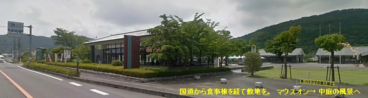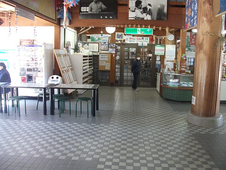中庭を利用したフードコート形式で9〜17時・一部店舗は水曜休、めん処みはらし(うどん・蕎麦・だんご)、さとやま工房(おやき・天ぷら・コロッケ)、彩佐屋(ラーメン・餃子)、カフェ一休(コーヒー・たこ焼き)、田中屋(唐揚げ・ソフト)、いわな屋(イワナ塩焼き)、あや(ラーメン)、笠山(だんご・大判焼き)などが営業している。 |