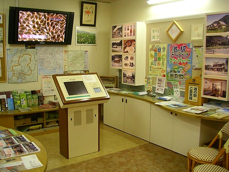 落ち着いた雰囲気の休憩・情報コーナーは軽食のスペースを兼ねており、白川茶の接待が受けられる。