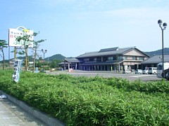 ● 駅左の大きな建物が 黄桜温泉 湯楽里。9〜21時の営業で90分300円・1日400円(休憩室は別途300円)、食事処や | |