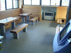 年中無休で9時〜21時の間 利用可。単独の別棟で面積も広く、食事程度はできる。情報端末やFAXサービスもあり。 | |