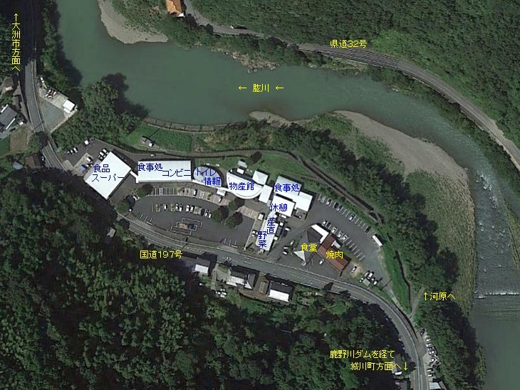 肱川沿いの広い敷地全体が商業集積、地域活性化を狙った県内初の試みらしい。旅人には少し鬱陶しいが。
