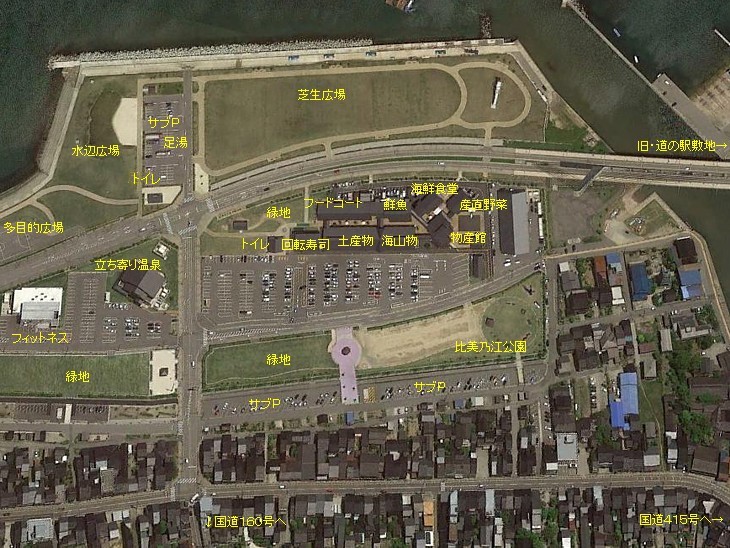 従来の「海鮮館」を閉鎖、2012年9月に橋を渡った北の敷地に「氷見漁港場外市場・番屋街」としてOPEN!