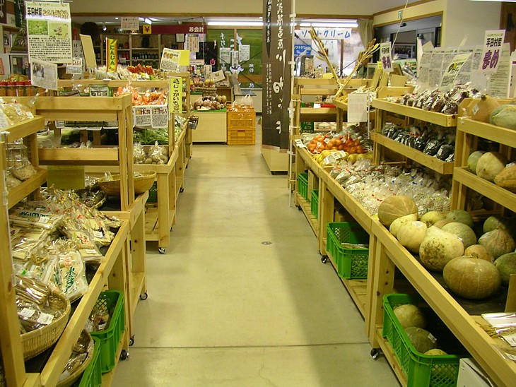 入口側通路の奥からレジの方向を。レジ横には軽食(ソフトクリーム)コーナーがある。