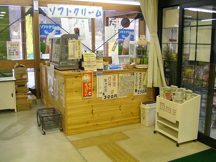 とてもささやかなソフトクリームのカウンター。レジのパートさんが注文に応じて担当する。