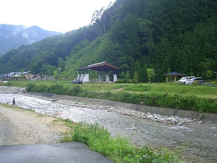 裏の川の左奥に町営コテージがあり、手前の公園でもP泊可能。