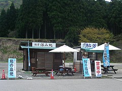 利用は10時〜18時、駅舎内の直営(?)店舗で扱っている食材は様々で楽しめる。屋台では鮎の塩焼きも売っていた。 | |