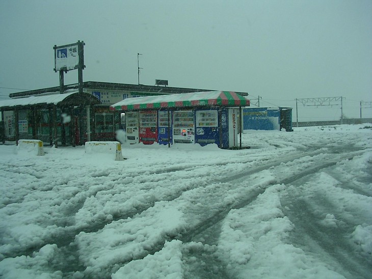 2007年の大晦日が近づいた雪の日。自販機の前には人の足跡もなく車の轍が残るだけ。