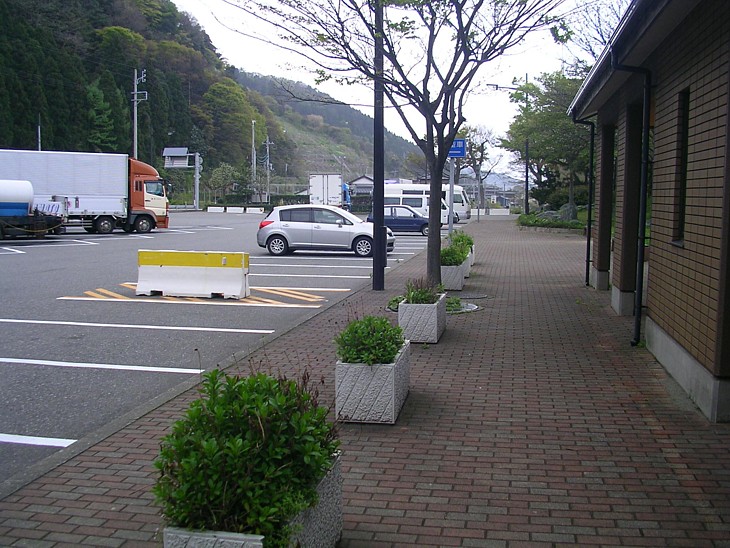 駅舎と除雪ステーションの間には緑地が設けられている。日本海を見渡す展望台も兼ねている。