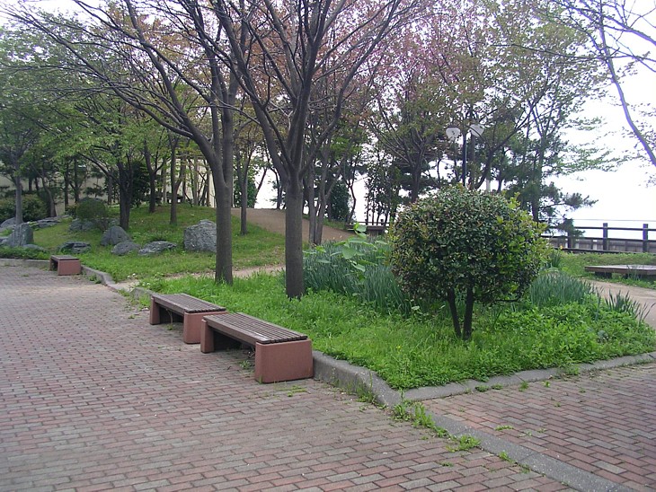 駅舎と除雪ステーションの間には緑地が設けられている。日本海を見渡す展望台も兼ねている。