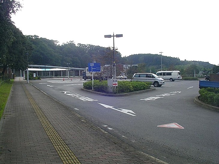 道路から駐車場へ。入口と出口を敷地の両側に分け、駐車場を中央に設けた使いやすいレイアウトだ。