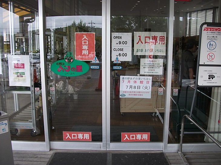 正面の自動ドアを入ると右側が物販コーナー、左側が軽食&休憩コーナーへ向う通路に分かれている。