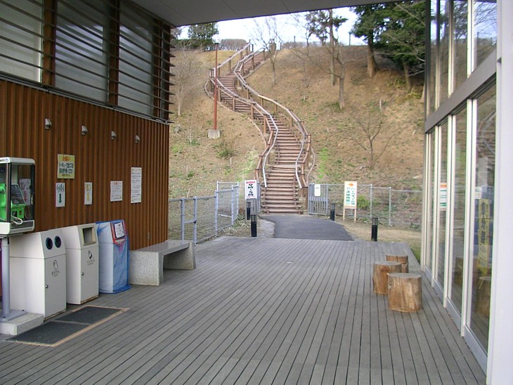 「アズ植物公園」への階段。反対側の農業センターにも専用駐車場がある。ペットもOK、入場は9〜17時。