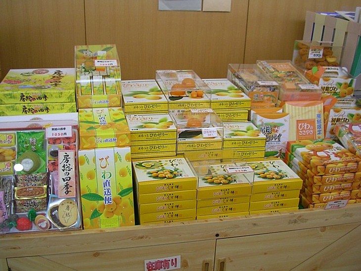 房総土産の「まるっと枇杷ゼリー」は他の駅でも見た。美味しいけど、これは熊本の土産物問屋の製品だ。