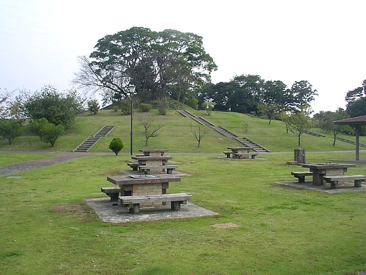 食器と食料を持参すれば楽しめるバーベキュー施設は炉のテーブルが10基、鉄板・網・火挟みつきで520円。