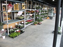 右: 店頭(駅頭か)の軒下には花鉢や売れ残りの野菜苗が並んでいた。地元園芸農家の持込だろう、鮮度は悪くないし価格もまぁまぁだった。