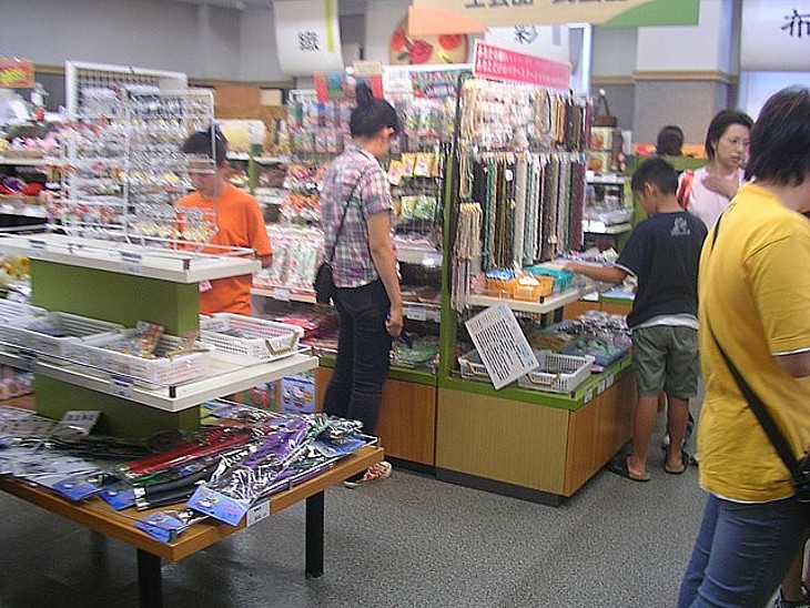民芸品と土産物を扱うコーナー。地域色のある品は少ないが立ち寄り客数の多さが絶対の強みになる。