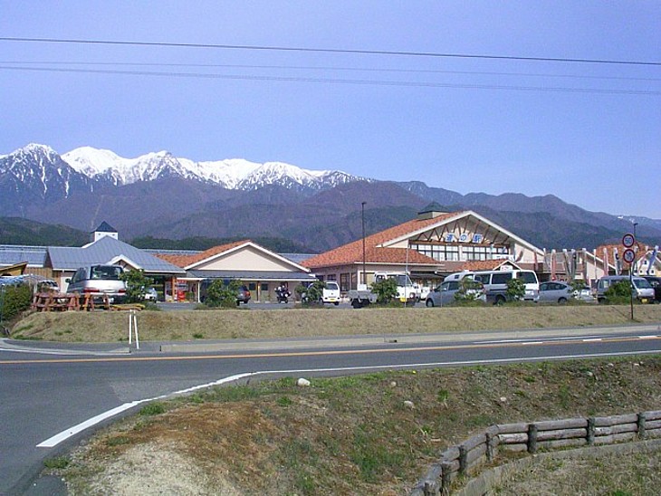 背景は駒ケ岳を主峰とする木曽山脈が連なっている。5月末頃までは頂上に雪を頂いた景観が楽しめる。