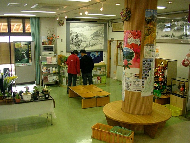 物販コーナー隅にある休憩所。カウンターの横には事務所があり、観光案内の要望などにも対応している。