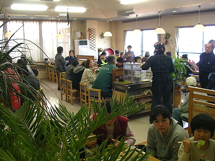 休日の食事処は順番待ちの列ができる。値段も高めで味も平凡だが周辺に食堂などが殆どないためだろう。