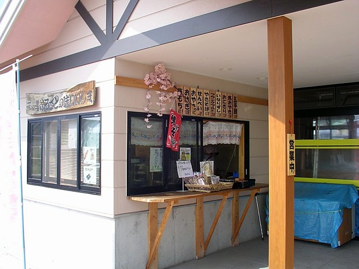 駅舎左隅の軽食コーナー。おやき・五平餅などが良く売れている。この右側にある休憩室からも注文できる。
