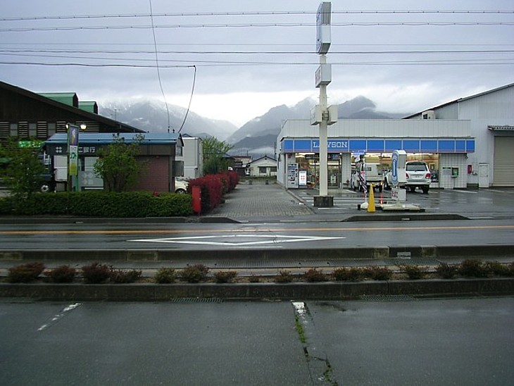 駅舎の右隅にも24時間トイレがある。道路沿いにATM、すぐ隣には24時間営業の(小さめの)ローソン。