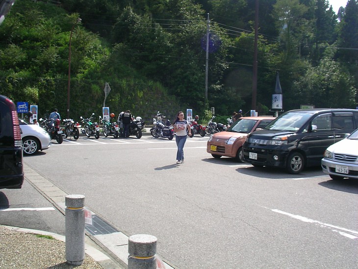 バイク用のスペースは国道沿い全てを確保しているが休日には完全に満車状態になる。