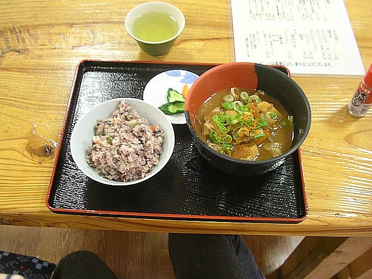 こちらは妻が注文したうどんを豚汁に変えた「横丁セット」、値段は忘れたが多分720円だと思う。