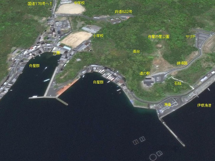 伊根の海を一望する高台に建つ道の駅。背後には広い公園が隣接し、舟屋群も徒歩圏内にある。