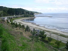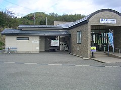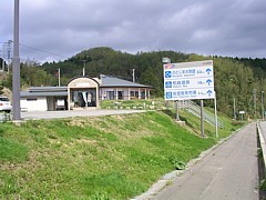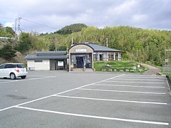 駅舎の裏手(キャンプ場への道)で散歩できる。時間があればすぐ前の浜辺(海水浴場)へ降りて水遊びなども楽しめる。 |