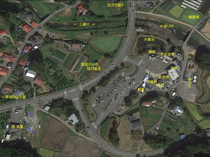 行列して待つ程じゃないけど、人気の高い蕎麦処・水車館と巨大な二連水車を併設した古い街道沿いの駅。