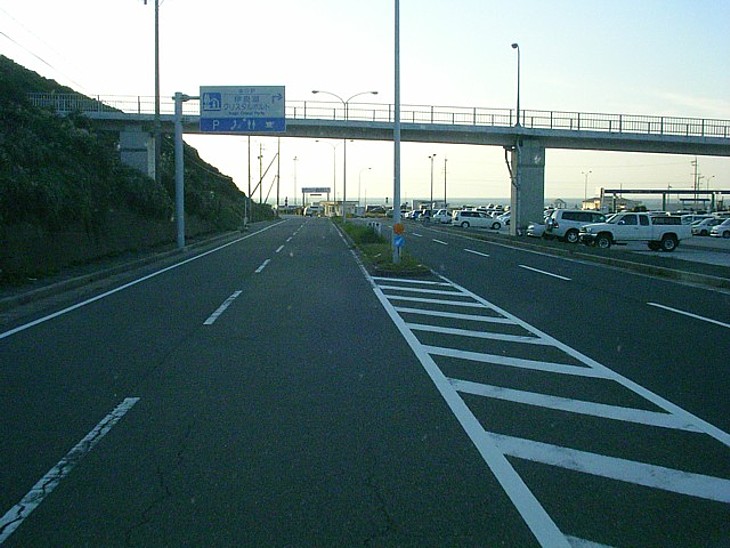 港手前の歩道橋は伊良湖岬の灯台へ向かう遊歩道。一周すると約2km、太平洋一望の美しい散歩道が続く。