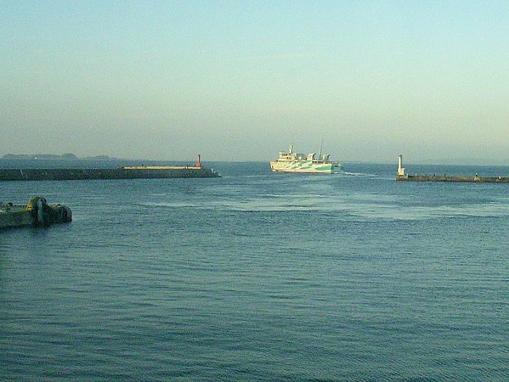 鳥羽行きのフェリーが出航する。左方向には遊覧船の通う知多半島沖の篠島や日間賀島などが遠望できる。