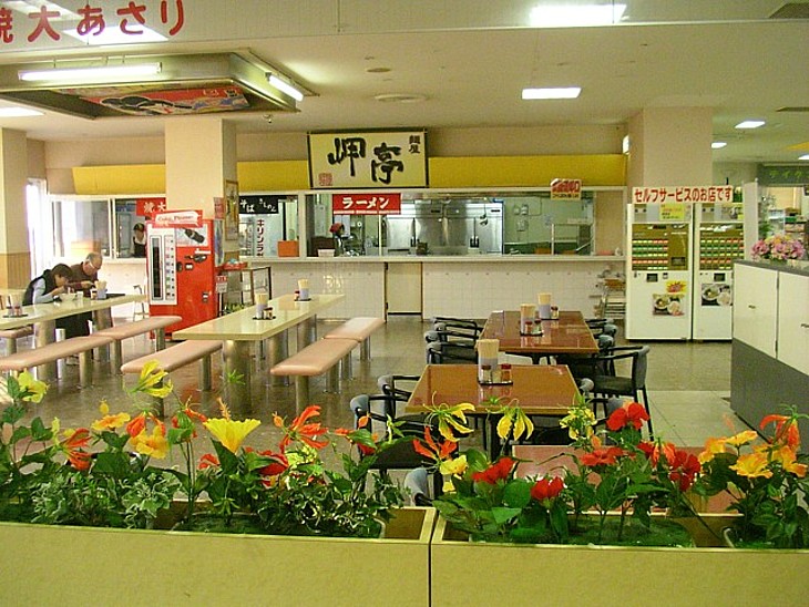 麺類がメインの広い食事処・岬亭。セルフサービスで、道の駅では見慣れた風景だ。価格もリーズナブル。