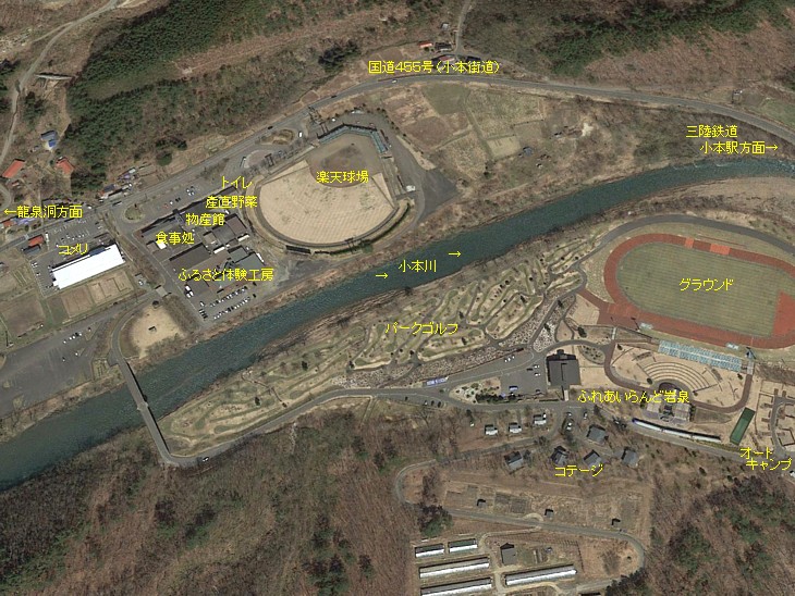 敷地の横には楽天イーグルスの岩泉球場、龍泉洞にも近い山間の繁盛駅。
