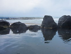 ● 併設の港の湯は9〜22時・水曜中心に定休あり、サウナ・露天付き・3時間まで300円は安い。内湯も露天も海に面しており、 | |