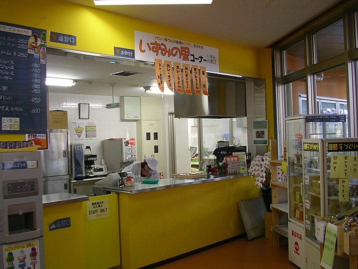食事処のカウンター。この規模では道の駅とホールなどの利用者両方には対応できないだろう。少し気になる。