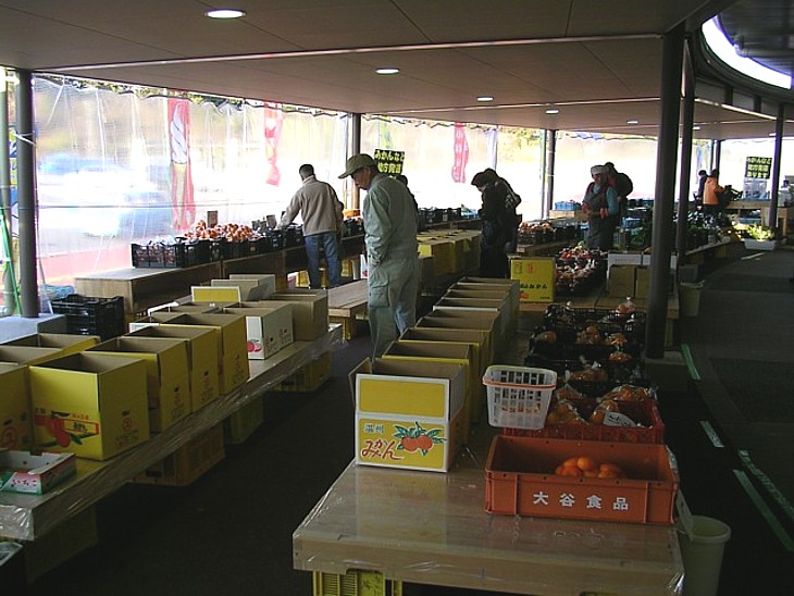 正面の右にはビニールで囲った野菜直売所。年末で混雑していたが最初の予定に追加して建てたものか。