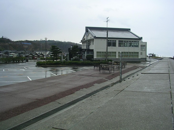 夕日ライン橋から背後の出雲崎漁港まで、脇にベンチなどを置いた海沿いの遊歩道が続いている。
