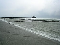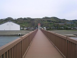 中: 遊歩道を歩いて「凪の橋」へ。長さは102m、橋と言っても先端は行き止まりでテトラポットの防波堤を越えた所に展望台を設けてある。