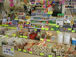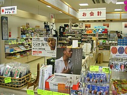 上: 正直なところ、この駅の物産コーナーは全く面白くない。何処にでもある土産物や問屋経由の陳腐なパック商品だけで購買意欲は感じない。