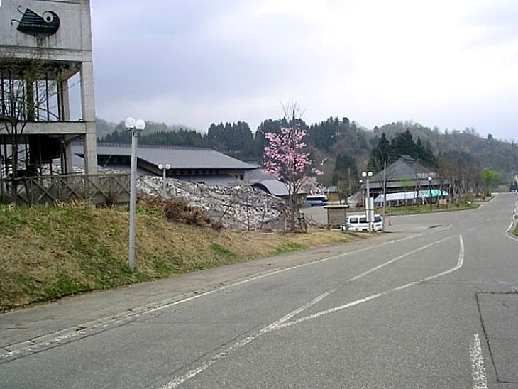 国道252号から県道12号に入り、更に分岐してスロープを下ると宿泊施設を囲む建物群。