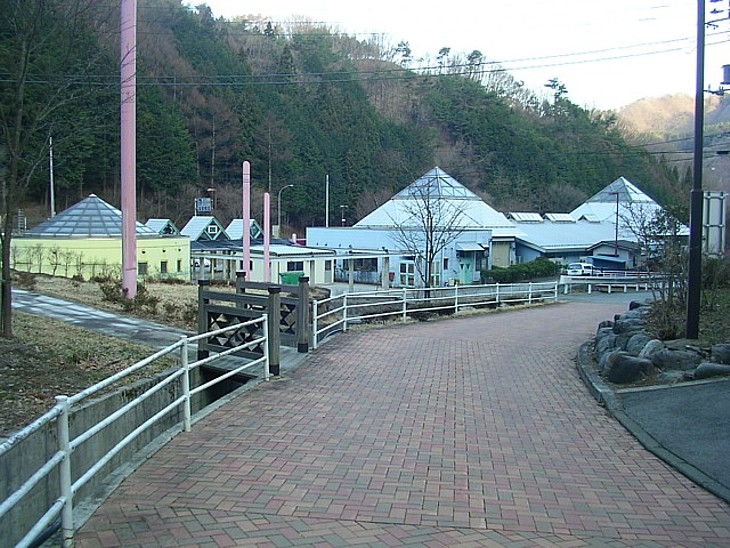 体験施設の前から駅舎に下る道を振り返る。駅の裏手からここまでは車の通行が可能だ。