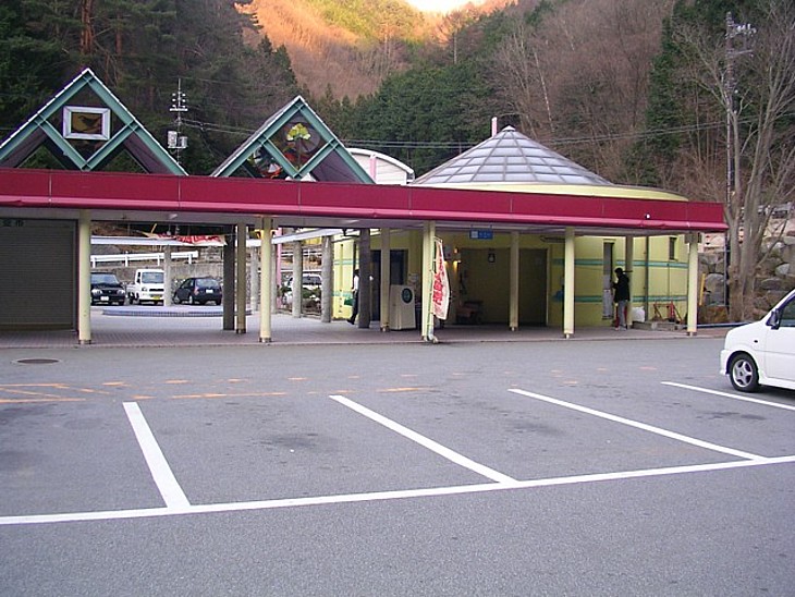 トイレまでは屋根があり、雨の日も濡れずに移動できる。裏側にある従業員用駐車場がP泊向き。