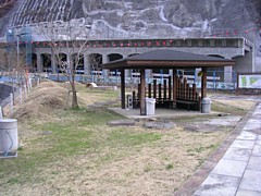 公園手前にある別棟のトイレは屋根付きの回廊で結ばれ、施設は古いが管理は良い。障害者用も含めウォシュレットなし。 | |