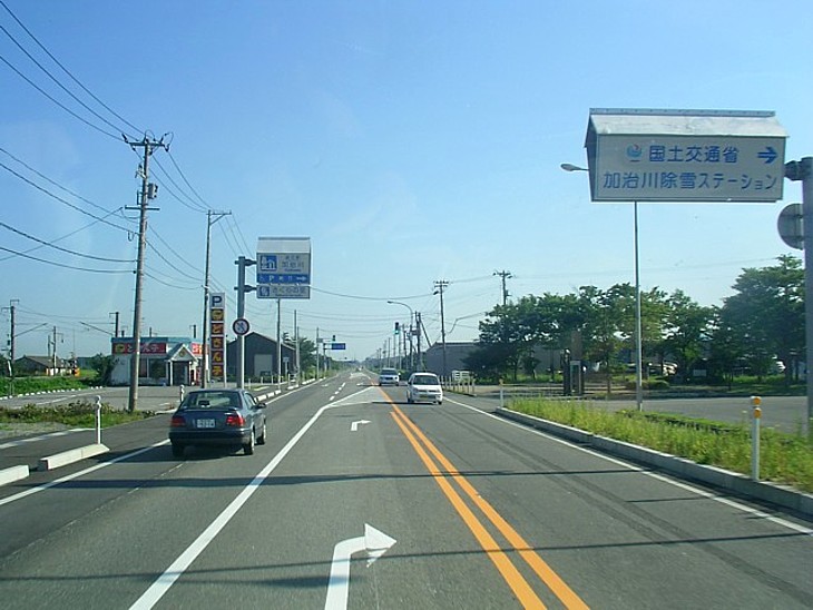 羽越本線と並んで北上する国道7号。海沿いに113号・山側に290号があり、通過車両は多くない。