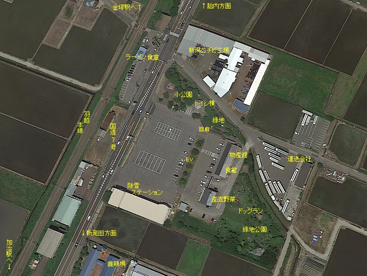 小公園と除雪センターのある小さな駅。国道7号沿いは魅力的な道の駅が多く、ここはP泊には向いてない。