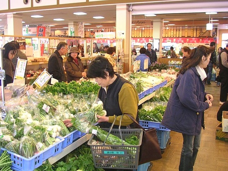 産直野菜売場は地元農家グループの直営で種類も豊富でもちろん新鮮。野菜購入目当ての客も多い。
